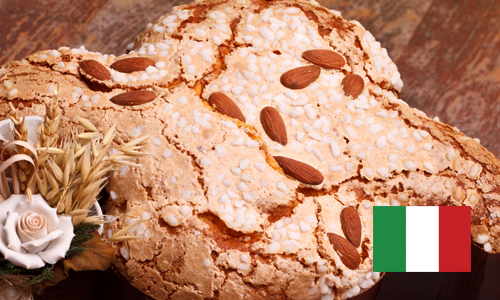 De volgende stop is Italië, het land van lekkere pizza’s, pasta’s en antipasti’s. Recepten worden doorgegeven binnen de familie van oma, tot moeder en dochter. Zo ook dit traditionele Paasbrood: Colomba di pasqua. Belangrijke ingrediënten zijn: amandelen en citroen.